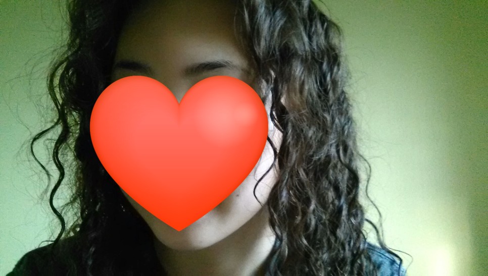 머리가 완전히 마르기 전이며, 컬 크림을 소량 바른 모습이다.